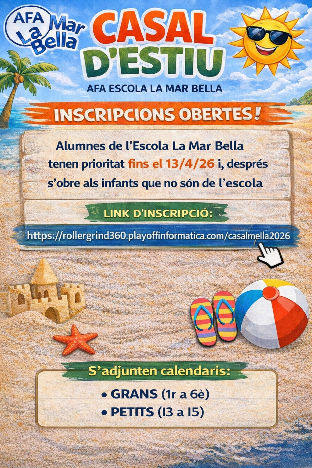 L’AFA La Mar Bella ja ha obert les inscripcions per al Casal d’Estiu 2026, una proposta pensada perquè els infants gaudeixin d’un estiu ple d’activitats, convivència, jocs i experiències inoblidables.